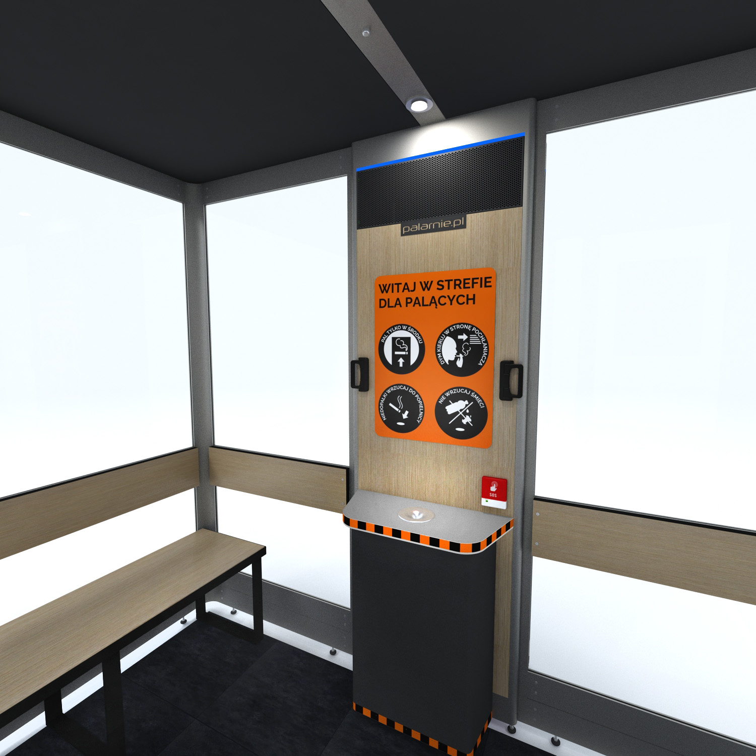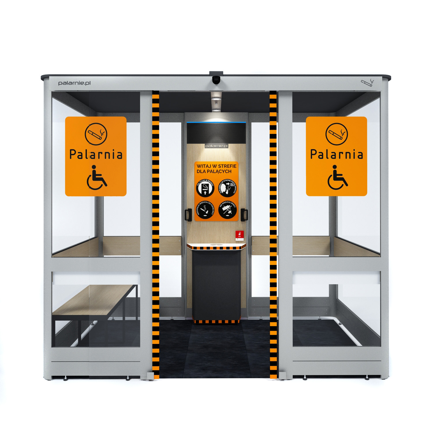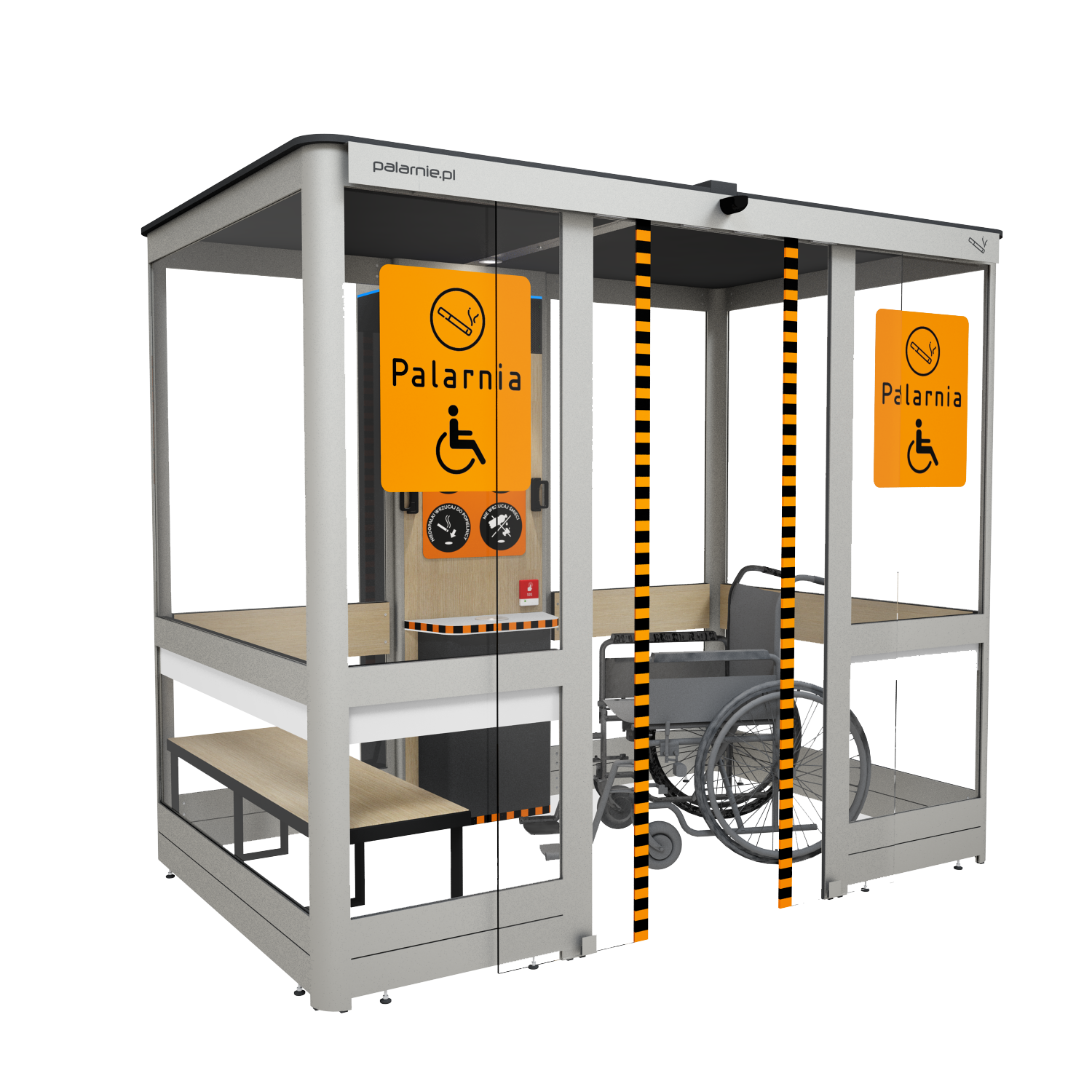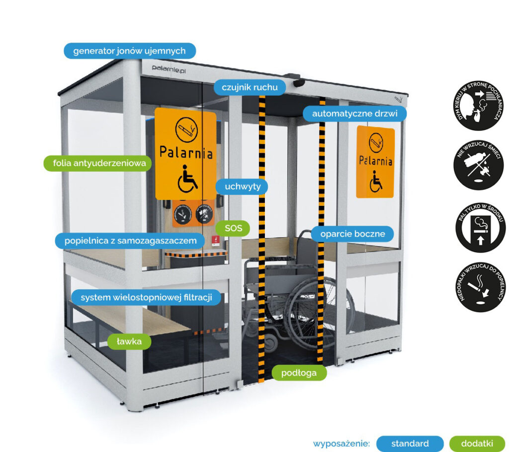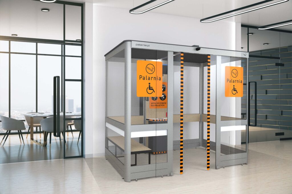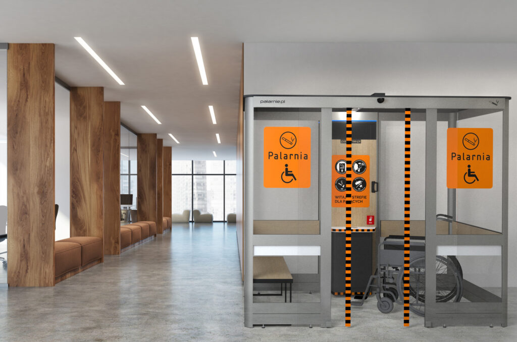 Kabiny dla palących to czyste miejsca do palenia o standardzie przewyższającym tradycyjne palarnie, umożliwiają palenie w sposób, który nie przeszkadza i nie szkodzi niepalącym. Kabiny cieszą się ogromnym uznaniem i pracują w dziesiątkach tysięcy różnych miejsc na całym świecie. Comfort plus to najnowszy model zaprojektowany z myślą o potrzebach osób palących z niepełnosprawnościami.